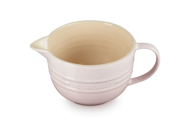 De ronde beslagkom van Le Creuset is gemaakt van roze geglazuurd aardewerk en heeft een diameter van 18,3 cm en een inhoud van 2 liter. De beslagkom heeft inclusief de greep een lengte van 26,1 cm. Gebruik de kom voor het mengen van beslag.