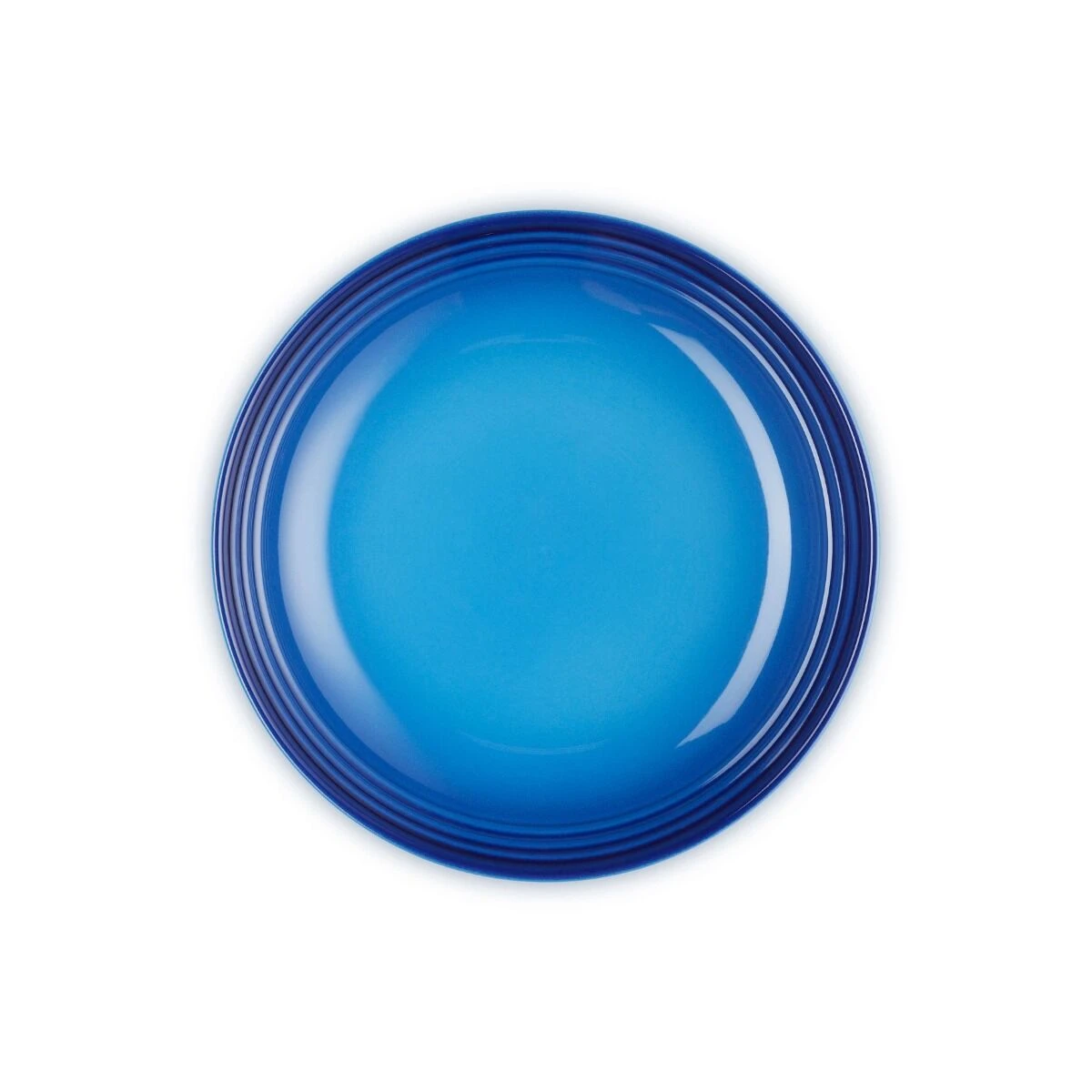 Het diepe bord van Le Creuset is gemaakt van geglazuurd aardewerk, uitgevoerd in Azure blauw, en heeft een glanzende afwerking. Het bord heeft een diameter van 22 cm.