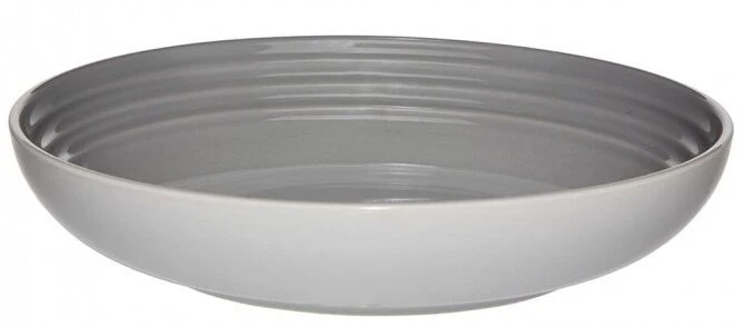 Het diepe bord van Le Creuset is gemaakt van geglazuurd aardewerk, uitgevoerd in mist grey, en heeft een glanzende afwerking. Het bord heeft een diameter van 22 cm.