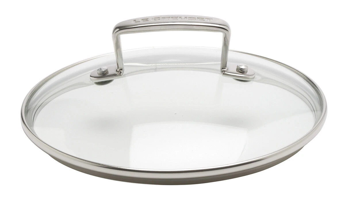 Het glazen deksel van Le Creuset is zeer resistent door het geharde glas en de smalle roestvrijstalen rand.