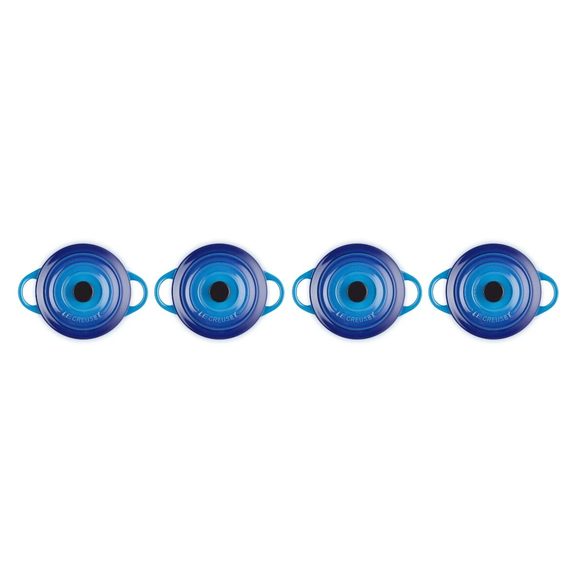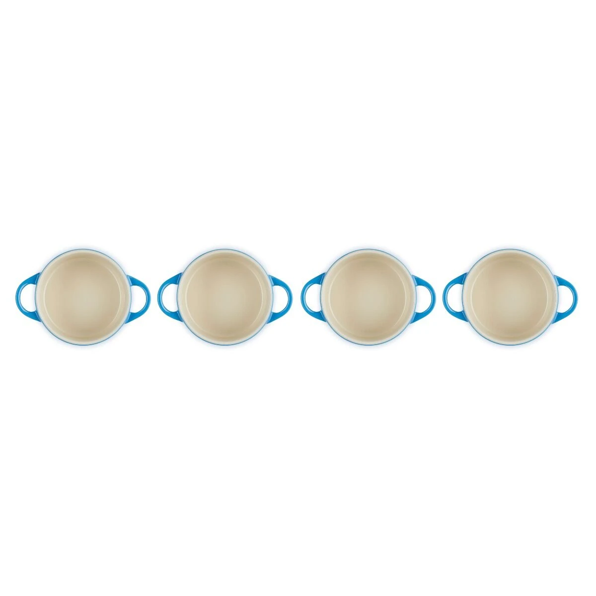 De ronde minipan van Le Creuset is gemaakt van Azure, blauw, geglazuurd aardewerk en heeft een diameter van 10 cm. Met een hoogte van 5 cm heeft het pannetje een inhoud van 200 ml en is geschikt voor het serveren van kleine gerechtjes. De pannetjes worden geleverd in een voordelige set van 4 stuks. Gebruik het Le Creuset minipannetje voor het bereiden en serveren van een tussengerecht, bijgerecht of verrassend dessert.
