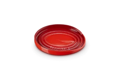 De ovale Le Creuset lepelhouder is gemaakt van rood geglazuurd aardewerk. Het geglazuurde oppervlak is kras- en vlekbestendig en geur- en smaakneutraal. Tijdens het koken kunt u de lepel waarmee u roert op deze lepelhouder leggen.