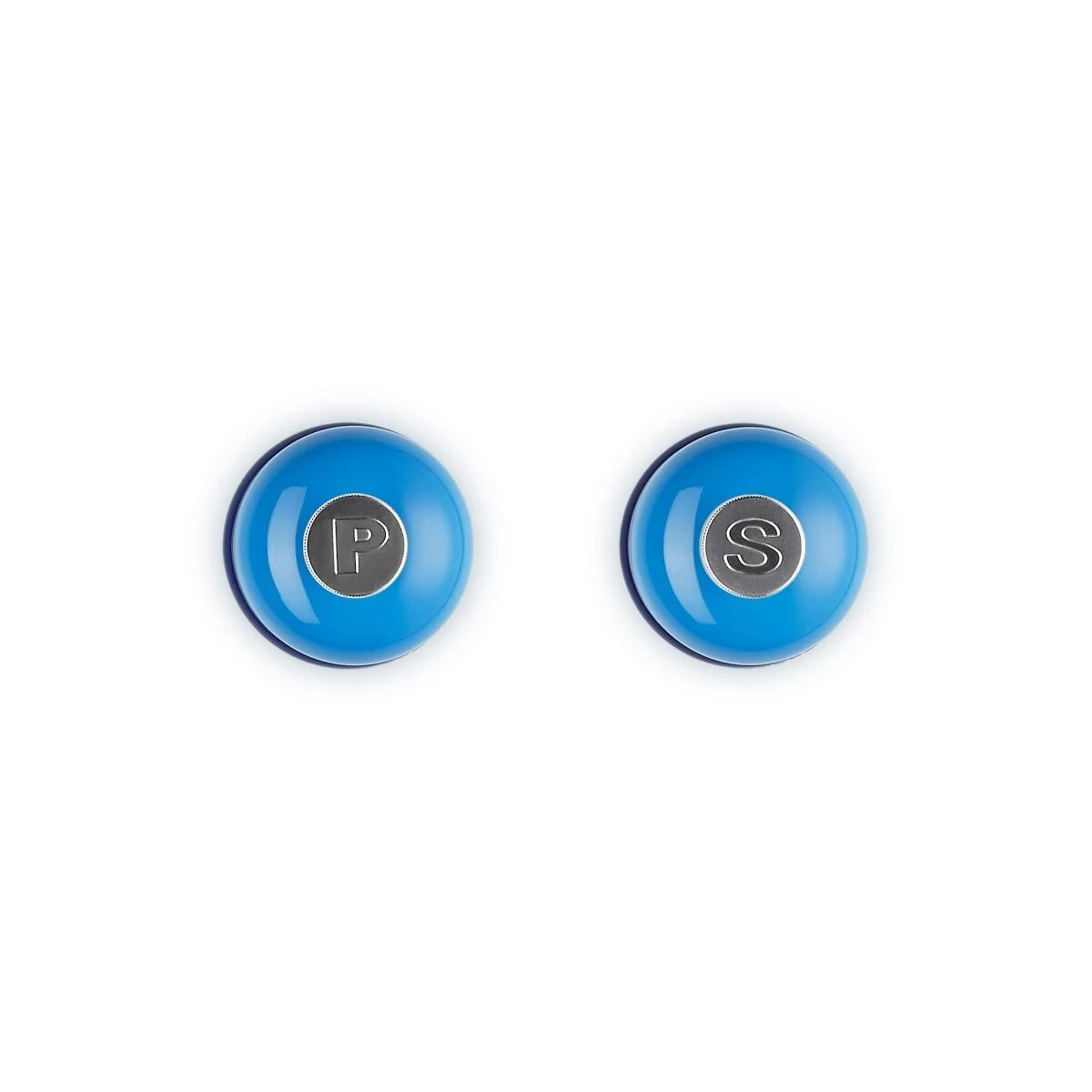 De peper- en zoutmolenset Azure, blauw, van Le Creuset is gemaakt van kunststof en heeft een lengte van 11 cm. De molen heeft een klassiek ontwerp en is eenvoudig te vullen. Met het keramische maalmechanisme maalt u zowel grof en fijn. Het maalsysteem is eenvoudig aan te passen naar uw wens, zodat u uw gerechten altijd op de juiste smaak brengt. De sluitdoppen zijn voorzien van een duidelijke markering, waardoor de molens gemakkelijk te onderscheiden zijn.