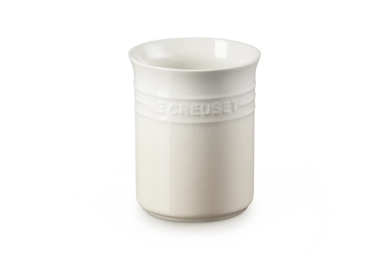 De Le Creuset pollepelpot is 15 cm hoog en gemaakt van geglazuurd aardewerk in de kleur meringue, de diameter bedraagt 12,5 cm. Naast het opbergen van uw pollepels kunt u de pot ook gebruiken voor het bereiden en serveren van gerechten.
