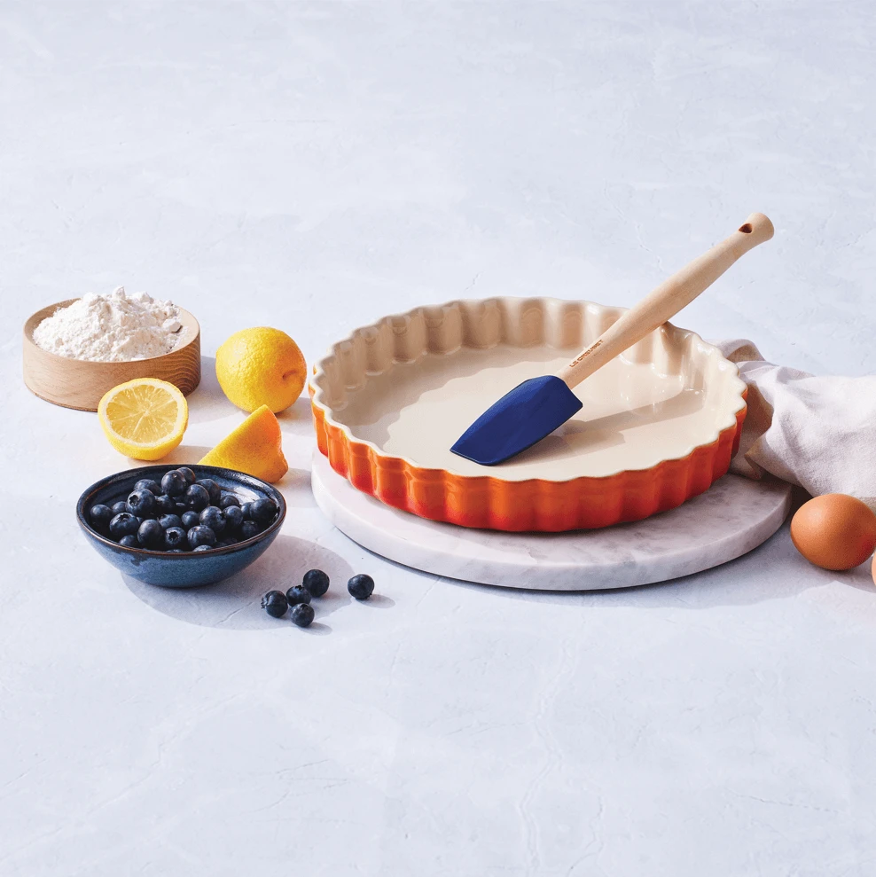 De Le Creuset Premium Medium spatel is gemaakt van hout en heeft een siliconen blad in de kleur Azure blauw, waardoor de spatel niet krast. De spatel heeft een platte en bolle zijde en heeft een lengte van 28,5 cm. De breedte van het blad is 5,8 cm.