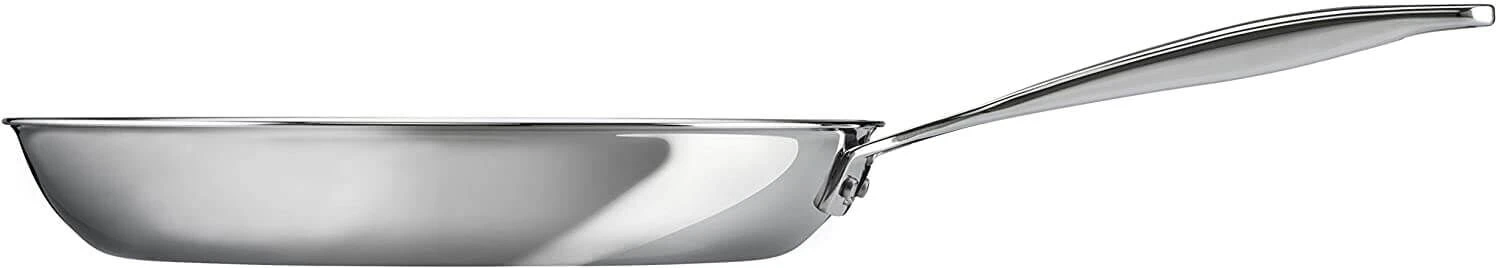 De Le Creuset RVS koekenpan heeft een diameter van 26 cm en is voorzien van een handgreep. De pan heeft een aluminium tussenlaag, ingekapseld in roestvrij staal, die de warmte gelijkmatig geleidt van de bodem tot aan de rand.