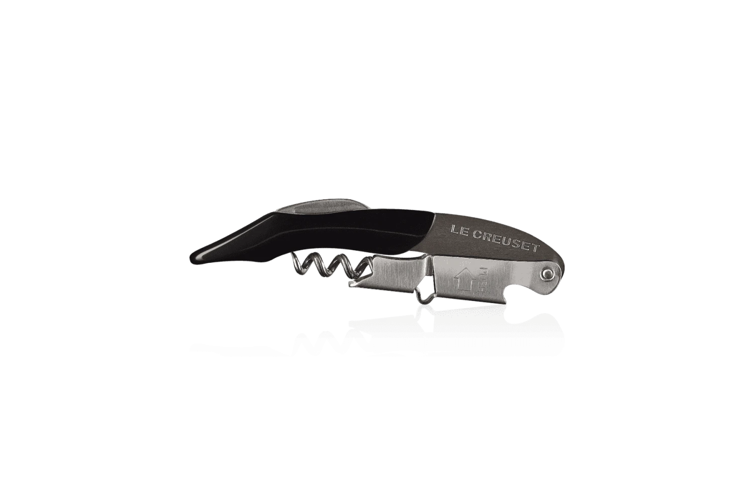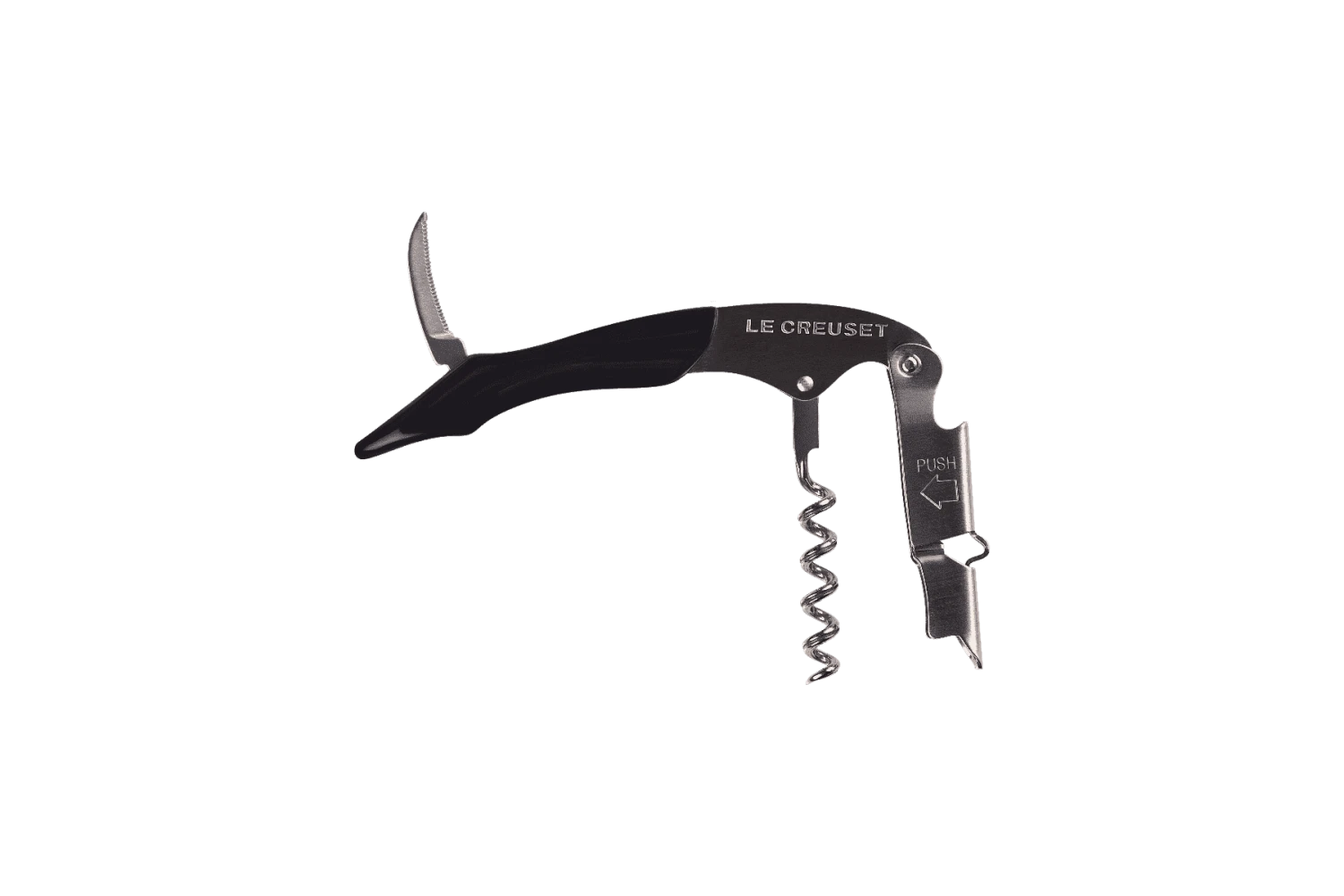 Het roestvrijstalen kelnersmes van Le Creuset Screwpull heeft 3 functies: kurkentrekker, flessenopener en foliesnijder. U opent eenvoudig alle flessen door eerst het folie rond de hals van bijvoorbeeld de wijnfles door te snijden en vervolgens de kurk met de kurkentrekker te verwijderen.