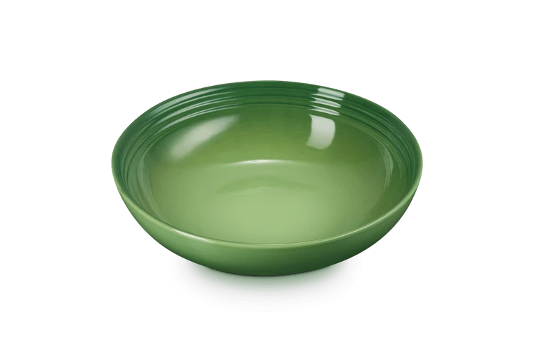 De ronde schaal van Le Creuset is gemaakt van geglazuurd aardewerk, uitgevoerd in de diepe en frisse kleur bamboo. De diameter van de schaal is 32 cm en de hoogt is 8,6 cm. Gebruik de schaal om bijvoorbeeld een salade in te serveren.
