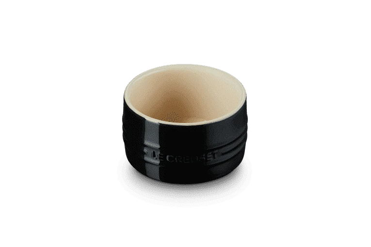 De souffléschaal van Le Creuset is gemaakt van geglazuurd aardewerk, uitgevoerd in zwart en heeft een glanzende afwerking. De souffléschaal heeft een diameter van 9 cm en een hoogte van 5,6 cm. Bereid in de souffléschaal van Le Creuset zoete en hartige soufflés.